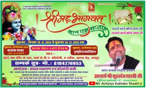The Shrimad Bhagwat Katha organized in Block A of Paldi Meena, Agra Road, Jaipur, was filled with devotion, faith, and spiritual consciousness.Local residents participated in this grand and divine religious event, receiving the inspiring presence and blessings of the revered Acharya Sukhdev Shastri.