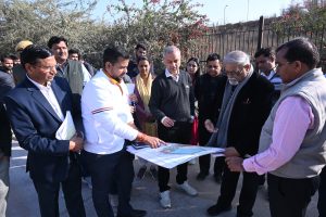 The visit began at Swarn Jayanti Park (near Alka Cinema). The JDC obtained detailed information from the consulting architect regarding the development of the park as an ‘Oxygen Park,’ as per the budget announcement, and instructed that the project be implemented soon. He also instructed that special attention be paid to the external and traffic management aspects of the developed project to ensure smooth traffic flow outside the park.The JDC reviewed the ongoing development works on Sikar Road and assessed the progress. He gave instructions to improve traffic management on Sikar Road. Following this, the sector roads were reviewed. Instructions were given to the Deputy Commissioner Zone-06 regarding the 100-foot sector road in front of VKI Road No. 05, and directions were given to expedite the construction of the Lohamandi scheme and the surrounding sector roads.