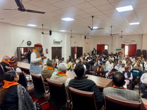 The Bharatiya Janata Party’s Ajmer Rural and Ajmer City units held important organizational meetings at two different locations regarding the Union Budget session. Union Minister of State for Agriculture and Farmers Welfare and Ajmer MP Bhagirath Choudhary was present at these meetings and addressed the party workers.
