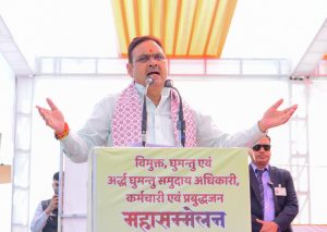 Chief Minister Bhajan Lal Sharma was addressing the Mahasammelan of Denotified, Nomadic, and Semi-Nomadic Community Officers, Employees, and Intellectuals held in the auditorium of Adarsh Vidya Mandir in Ambabari on Sunday. He said that our government has taken concrete steps to empower Denotified, Nomadic, and Semi-Nomadic communities. Our government distributed residential leases to provide shelter to nomadic families and arranged hostels for the education of their children.