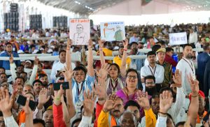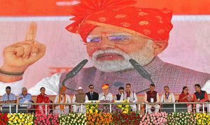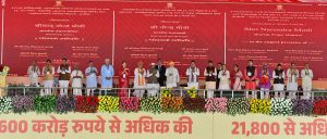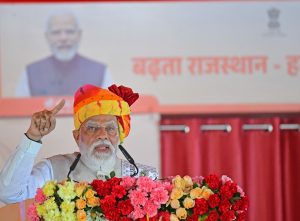 Prime Minister Narendra Modi, after inaugurating and laying the foundation stone for various development projects at the Kayad Rest House in Ajmer on Saturday, addressed a large gathering in the presence of Governor Haribhau Bagde and Chief Minister Bhajanlal Sharma. He said, “We are continuously working on the mantra of ‘Developed India from Developed Rajasthan’. The double-engine government in Rajasthan is rapidly fulfilling the development promises it made when it came to power.”