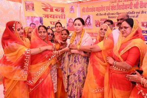 Jaipur. Deputy Chief Minister Diya Kumari paid respectful homage to Sant Sen Ji Maharaj today while participating in the 9th Sen Jayanti celebration held in the Vidyadhar Nagar Assembly constituency. A large number of devotees and prominent members of the community were present on this occasion.